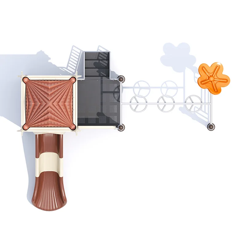 The dual-function configuration maximizes recreational value within minimal ground space requirements, addressing the critical challenge of urban playground design where space optimization directly impacts project feasibility. This innovative approach allows facility operators to provide diverse play experiences without expanding their physical footprint or compromising safety clearance requirements. The vertical design elements create engaging play challenges while maintaining appropriate safety zones around the equipment perimeter.