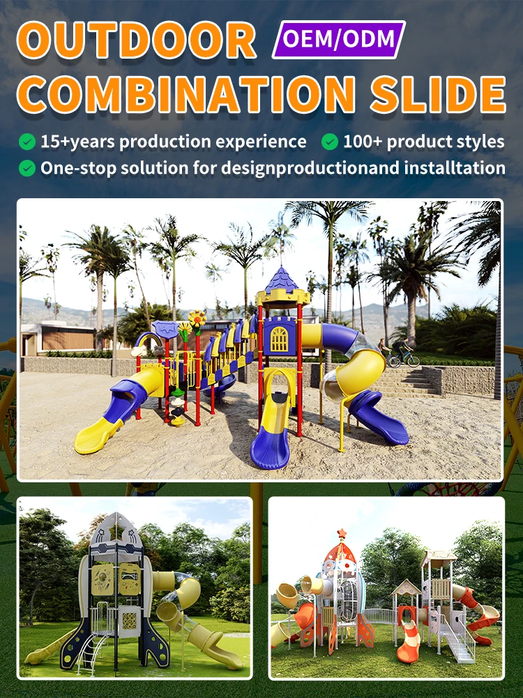 Feelkids Large Outdoor Amusement Equipment Playground Plastic+Galvanized Pipe Slide Children's Park High Capacity Supports